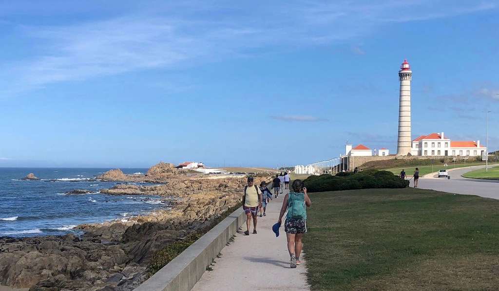 A flat mixture of boardwalk, paved path, and cobblestones. 22 KM The day is a mixture of beautiful beaches,lovely rugged coastline, nice little hamlets, and a conclusion at one of the coolest towns on the Camino – Vila do Conde. Boa Nova Lighthouse North of Matosinhos. It was built to alleviate the shipwrecks along this notorious stretch of sea known as the Black Coast – Costa Negra.Boa Nova Chapel near Matosinhos with a good cafe nearby. We continue along the boardwalks – paseos de madera – there will be information panels all along the coast to Vila do Conde.Obelisco da Memoria in memory of the surprise landing of liberal troops commanded by Dom Pedro IV in 1832 who took on the absolutist army in Porto.WALKING ON SUNSHINE