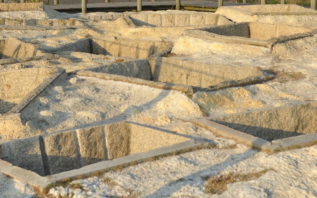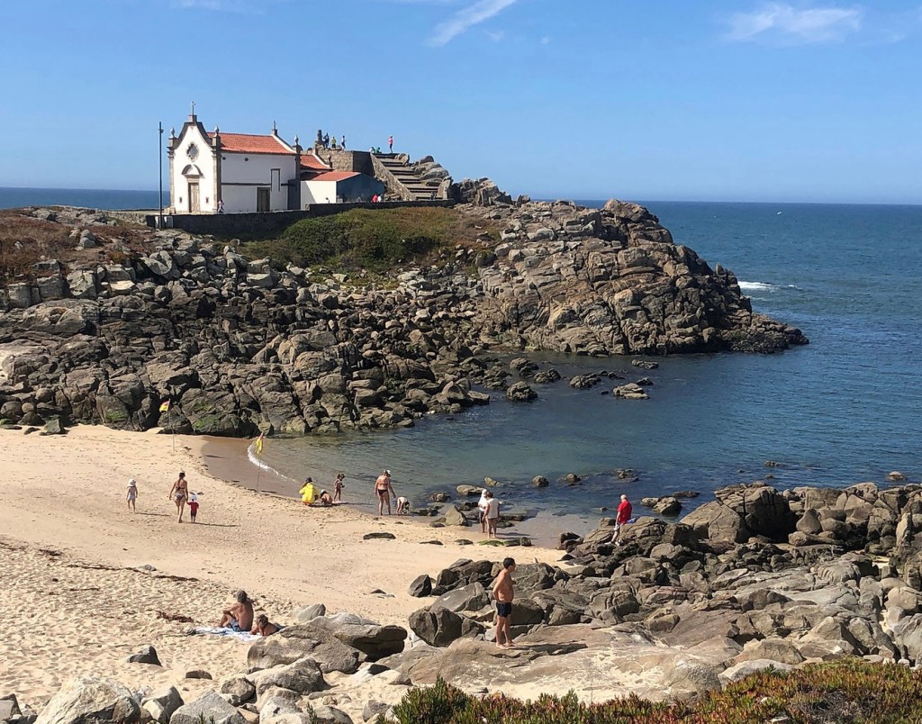 Tanques Romanos Spread along 600 meters along the Angeiras Beach, there are six clusters of tanks, amounting to 32 pieces, excavated in the rocks during the Roman period (3rd to 4th centuries AD). These rectangular cavities of different depths would be used for fish salting and the production of other types of canned fish, including the famous “garum”. Close to some tanks, several structures were also detected, formed by pebbles and clay floors and enclosed by small stone walls. The area is used to harvest seaweed – Sargaco – to fertilize the sterile sandy soil..Using the wooden bridge,we then cross over the River Onda and onwards towards Labruge using the boardwalks,winding our way around the San Paio headland.Capela San Paio –