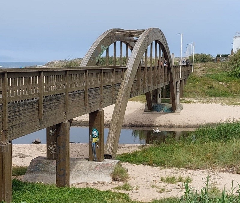 We shall be sauntering along pavements,cycle tracks and boardwalks for the next two days. We walk below the bridge and after 2.5 KM we should reach the mouth of the river and the Atlantic Ocean.