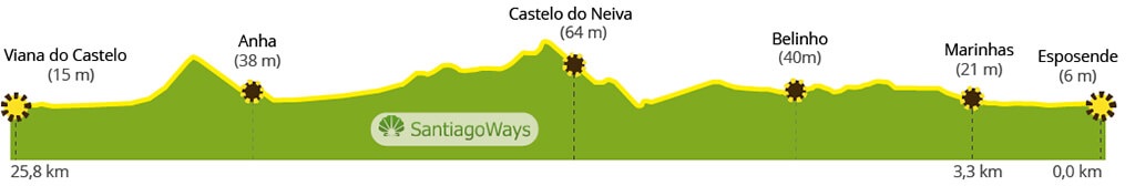 The Church of Santiago de Castelo do Neiva dates from the 9th century; It may be the first church dedicated to the apostle throughout the Iberian Peninsula, after the primitive temple that was raised in Santiago de Compostela. Inside the church, we can find a carved tombstone, where the consecration of the temple to the saint is found, in 862.