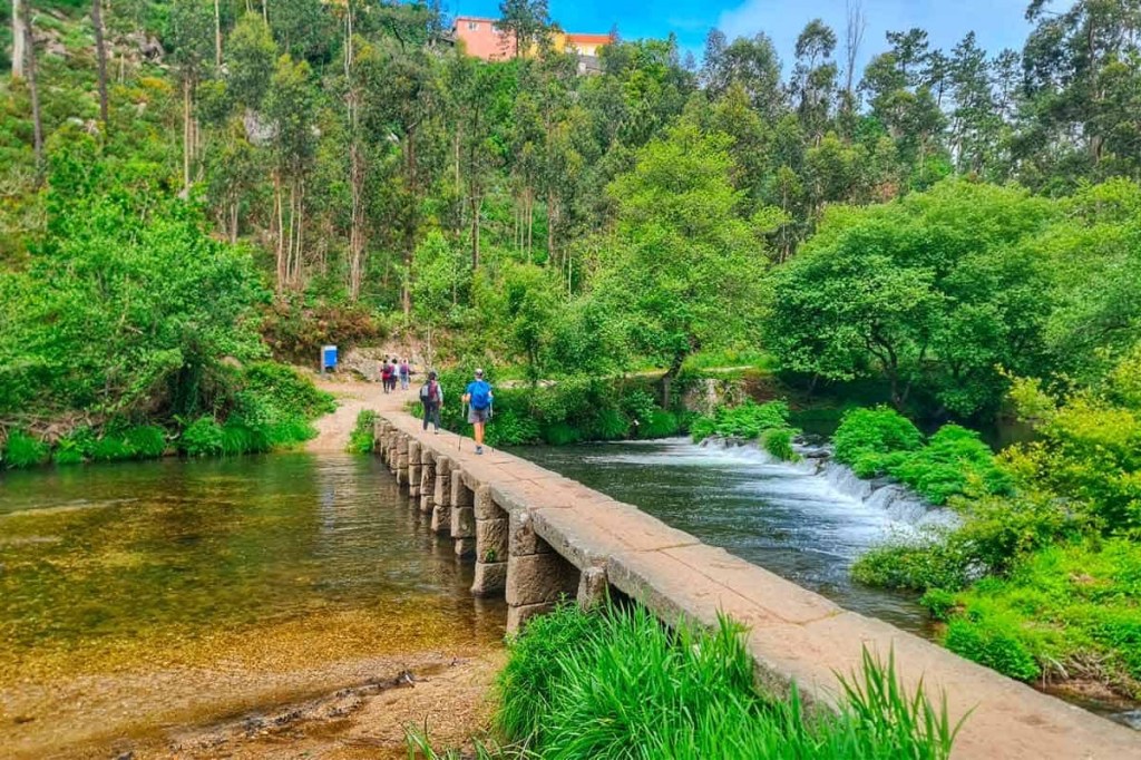 After a crossroads with a large Jacobean monolith in stone, on the left a narrow, but beautiful, the path starts that descends to the riverbed of the River Neiva, next to an old mill or Azenha of Guilheta, transformed today into a country house.
