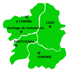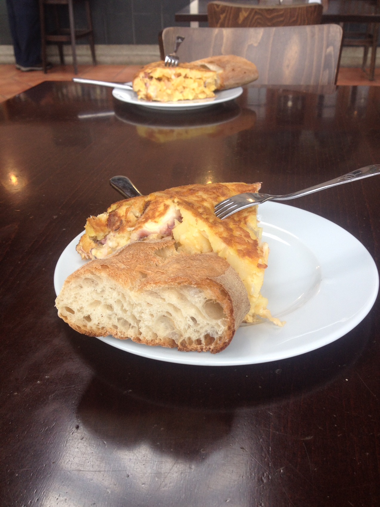 Looking at the above map, we entered by the south east. Our hotel is superb, which is some consolation and very good value. It provides both a restaurant and cafeteria , which serves the nearby A- 52 motorway. Lunch was an enormous slice of Tortilla, stuffed with Pulpo and fresh bread, plus a beer -€ 3.50 a head; beats  Watford Gap, everytime.