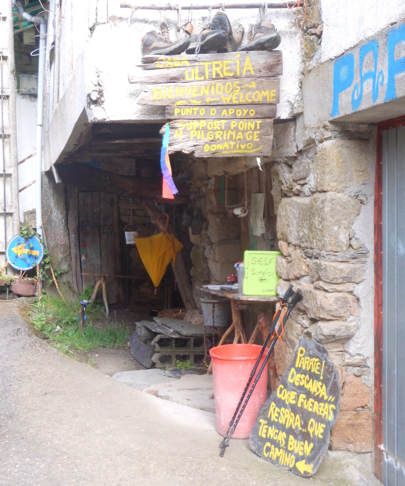 By now, we were in need of refreshment, but most guidebooks state that there is nothing, until Laza. To our surprise, in the tiny Pueblo of As Elias,we came across a somewhat makeshift, self- service point for Pelegrinos. It stated that it relied solely on donations. We enjoyed coffee from a flask and stamped our Credencials, whilst reading all the impromptu messages scrawled on the timber facade.