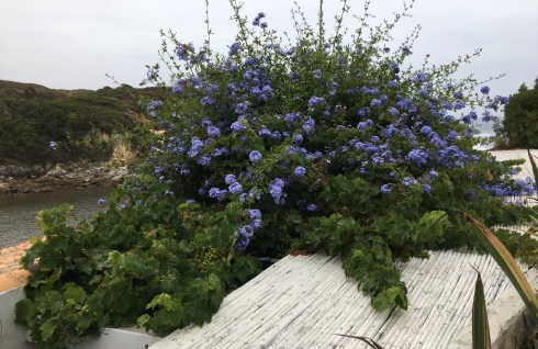 The other day, descending to the cove, we passed an eccentric looking soul – a troubadour ? – picking early blackberries and strumming his guitar as he walked on.