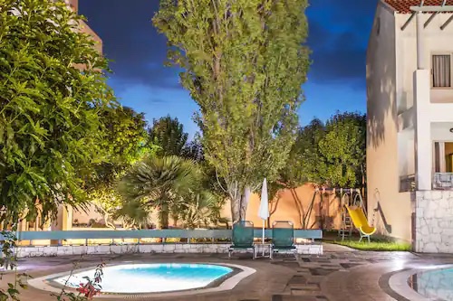 With a two hour time difference I realised ,how glad I was to have pre- booked the taxi to the apartment as we met our driver in the Arrivals hall,holding my name ( correctly spelt – wonders! ). He greeted us with friendly fist bump and in no time at all we were meandering along,past Souda Bay and it’s historic WWII grave yard, the second deepest port in the Med. according to our driver – there was a huge cruise ship moored – then a long a stretch of motorway and some narrow back roads to Karo Daratso.