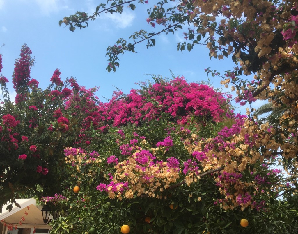 Soon we were ready to find coffee and a light lunch at the Loca cafe bar just down the road. Spoilt for choice round here. The friendly lady behind the bar directed us to the beach areas,down a very quiet tree lined road adjacent to the cafe. There were a number of small hotels and restaurants en route and many of the names I could recall from earlier searches on Booking.Com. I was impressed by the variety of vegetation and flowers along the way.