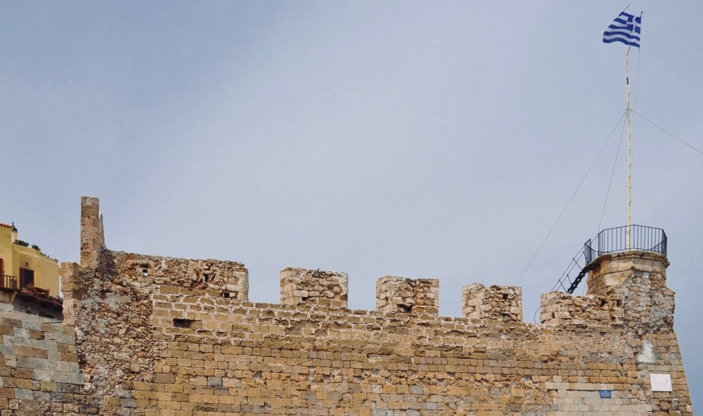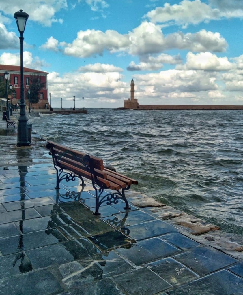 The wet weather on day two of the holiday had been predicted but undaunted, the local bus was taken into Chania – an opportunist umbrella sales man just happened to have placed himself in the square where we alighted the bus and so I parted with 5 euros for something that looked as watertight as tissue paper,however, it worked.