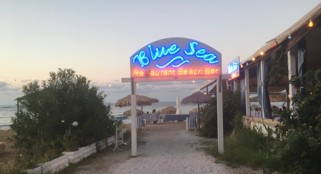 For dinner we headed for the Blue Sea Restaurant and stopped for a sharpener on the way in a bar with some very natural attractions.