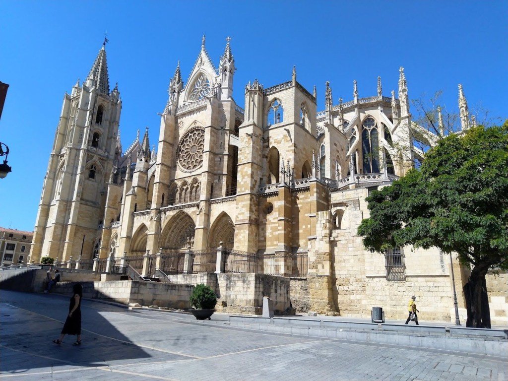“León’s 13th-century cathedral, with its soaring towers, flying buttresses and breathtaking interior, is the city’s spiritual heart. Whether spotlit by night or bathed in glorious northern sunshine, the cathedral, arguably Spain’s premier Gothic masterpiece, exudes a glorious, almost luminous quality. The show-stopping facade has a radiant rose window, three richly sculpted doorways and two muscular towers. The main entrance is lorded over by a scene of the Last Supper, while an extraordinary gallery of vidrieras (stained-glass windows) awaits inside.” WANDERLOG.COM