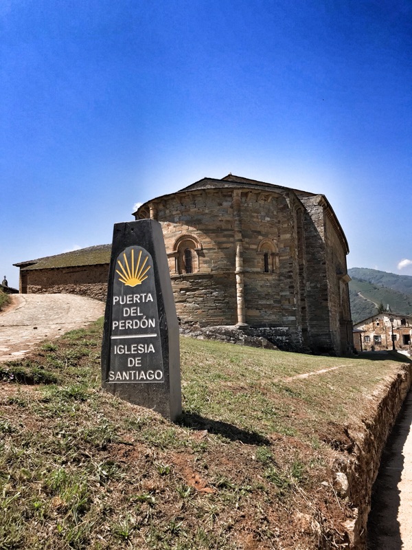 After climbing the last hill and dale we pass an iconic sight, the Iglesia de Santiago and its Puerta de Perdon ( door of pardon ).