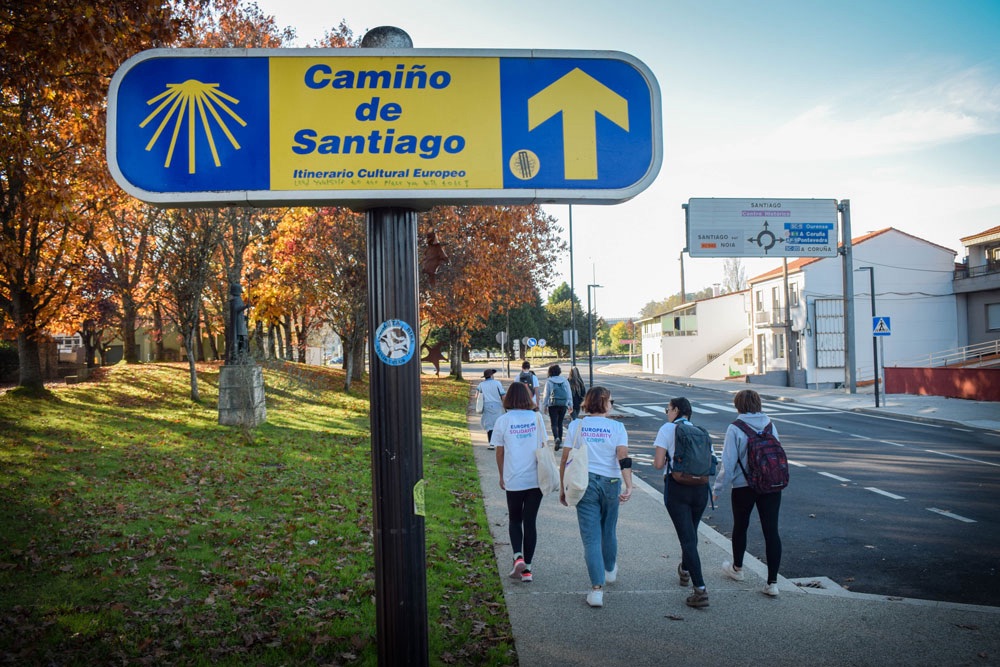 Made of two giant pilgrims pointing the Santiago de Compostela Cathedral. It was built in the 1993 Holy Year and was design by the Galician sculptor Acuña..