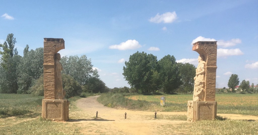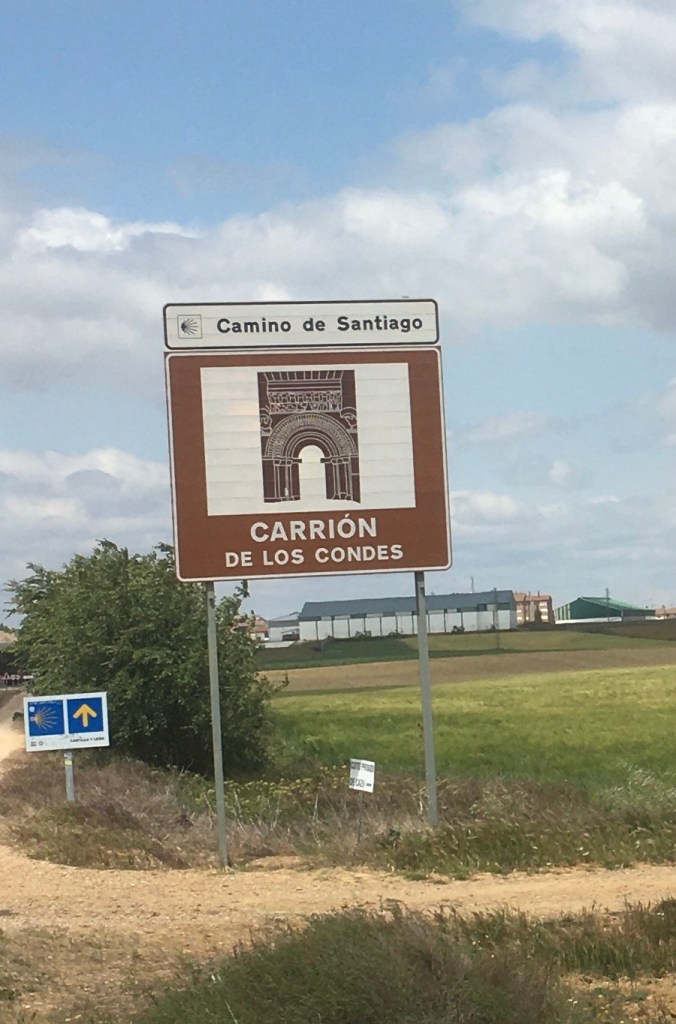 We were never without views of mountain ranges for the first few days and they were a splendid backdrop. The new members soon adjusted to the routine of cases at Reception by 08.00 ( to be transported by the ever reliable Spanish post office – the Correos – all booked well ahead. Setting off time was down to individuals, we didn’t process!The signage ( follow the arrows ) was as reliable as ever and as this is the most populous section of the Frances, there were always Pelegrinos not far away.