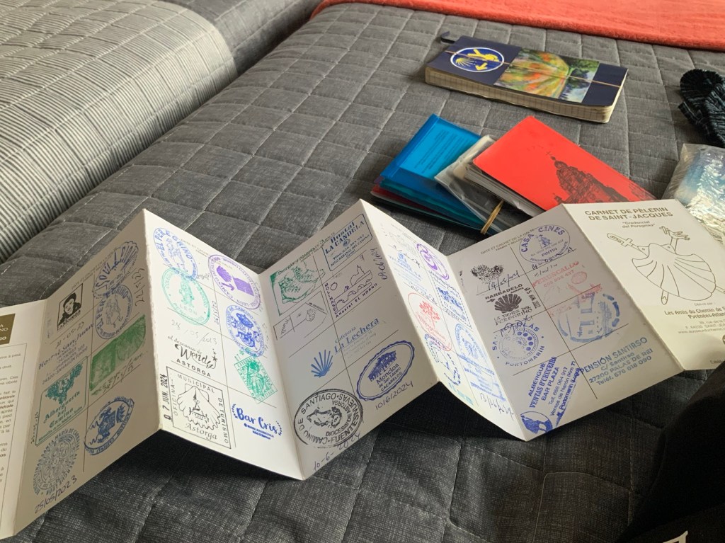 To obtain your Compostela ( certificate of completion ) it is necessary to get your Pilgrim Passport stamped at least once a day – normally where you stayed the night. These are available in all accommodations,bars, restaurants and churches, if you found one that was open.