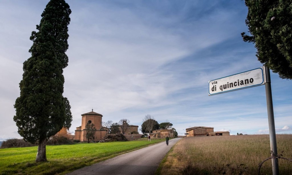 We walk uphill en route to Buonconvento, along a series of paths that keep us among fields and off the SR2. The climb is a little steeper towards the top – good views – and eventually pick up the SR2 Via Cassia just before the town, crossing the River Ombrone to enter Buonconvento via the Porto Sienes. About an hour’s walk from Ponte d’Arbia.