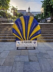 O PORRINO is an industrial and mining town,known for its pink granite ( exported mainly to USA and Japan ). There is not a great deal to see – the decorative fountain and the palatial town hall both designed by an O Porrino local,Antonio Palacios.The Town Hall.Apartamentos TARELA, calle Tarela,esquino calle Perez Leiros Bajo. “This evening’s accommodation. Stayed here while on the Camino Portuguese and this was the BEST accommodation by far. Large, modern, clean apartment with washing machine, refrigerator, microwave, air conditioning, iron and ironing board. Great view from the relaxing outdoor private terrace. The host was easy to deal with and helped ensure I had everything needed and arrived within a minute of my arrival. Highly recommended!” RECENT REVIEW.