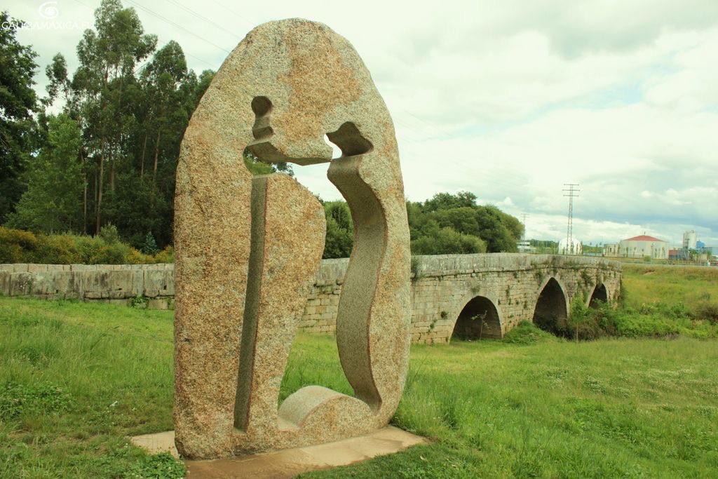 We then take a dirt path and fork right to walk alongside the river Louro ( RHS ) for 2 KM until we reach the outskirts of O PORRINO. We leave the river path close to the Albergue de Peregrinos,along the Av. Buenos Aires, cross the river, past a Froiz supermarket and over railway tracks,going right towards the old town.