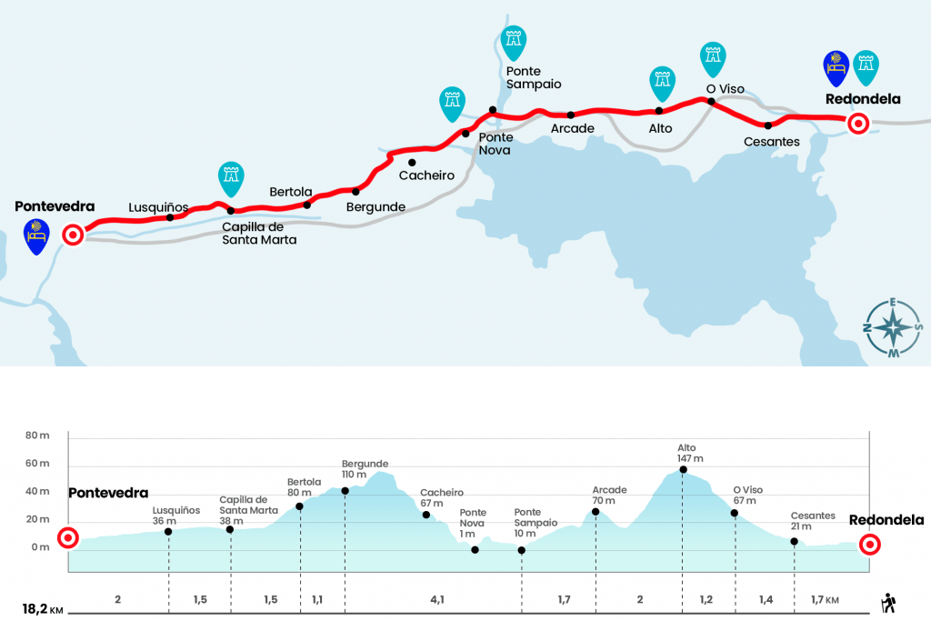 “The city of Pontevedra on the last section of the Portuguese Way is home to an elegant old town. Sitting pretty in the heart of the ‘ría’ of the same name, Pontevedra has been shaped by a rich maritime and trading past. “ The old town is mainly car-free and open to pedestrians only, it is easy to wander around its old granite streets and admire the elegant buildings.
