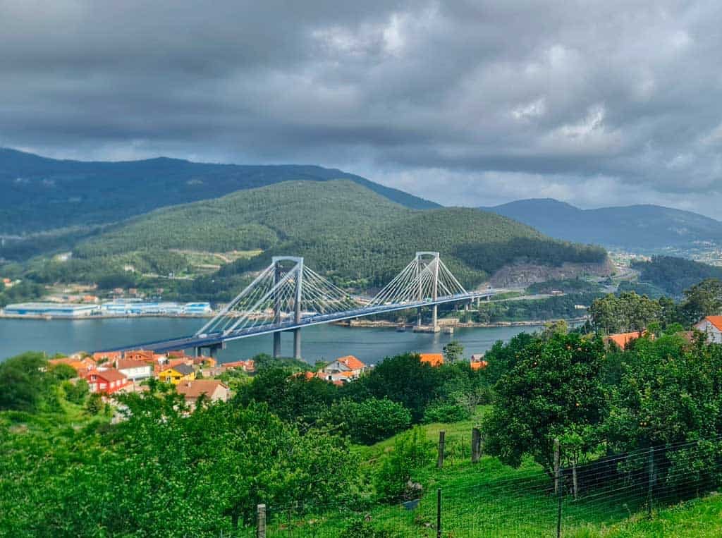 We shall be climbing uphill now and will traverse around the O Viso peak. Along the way you pass an installation of shells.From here it is downhill again to the N550. We should take care crossing here. At the entrance to Arcade, the camino turns left rather unnecessarily. It will cross back over the N550 in a few hundred metres, taking us past the albergues and shops of Arcade.