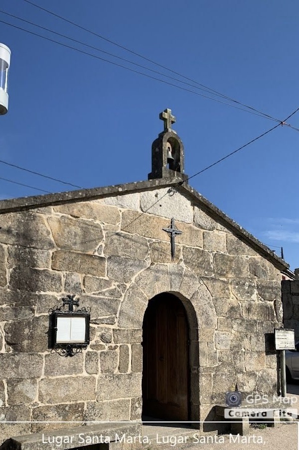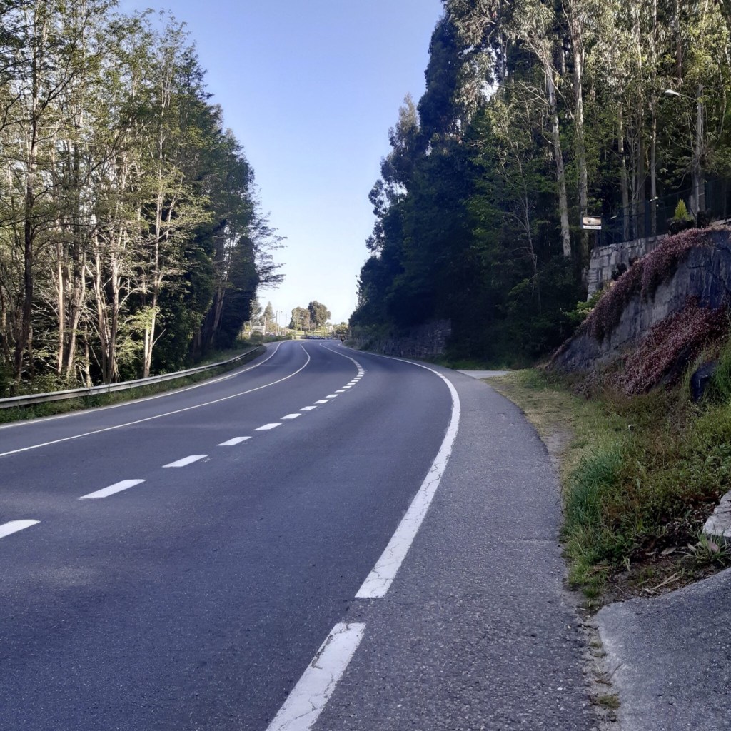 Rather than walk from Casa Teresa ( our accommodation) along the busy N550 to Cesantes, we shall cut slightly inland to pick up the Camino coming northbound from Redondela, eventually on Rua Torre de Calle, going uphill across a bridge over railway tracks, then immediately left on to the cobbled Camino Real de Cesantes and downhill, passing ( or not ) Cafe/Pension Rustica Jumboli.