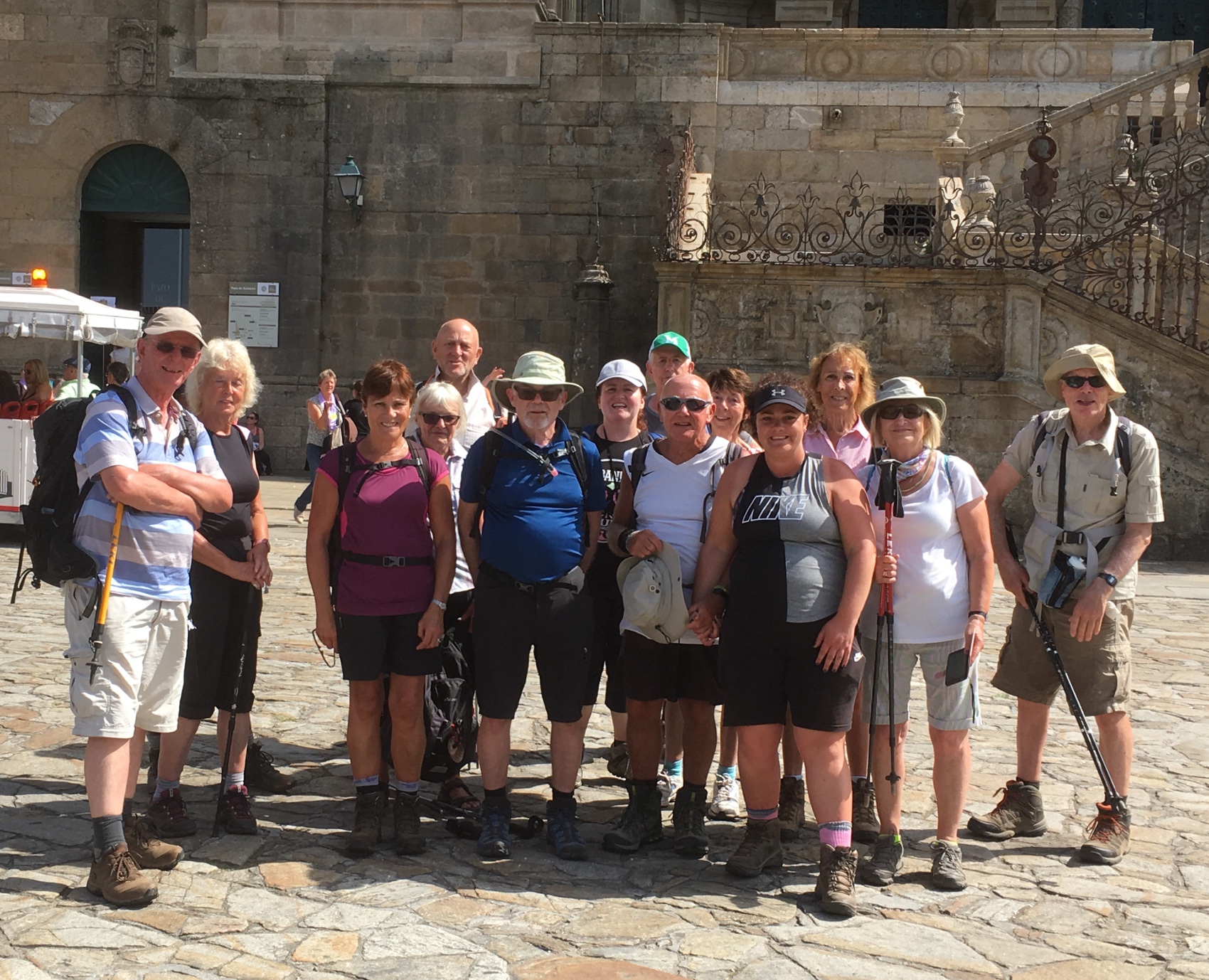 1. In 2013…led a group of not-so-able pilgrims for 17 days from Sarria to Santiago. We averaged 5km per day and spent at least 2 or 3 nights in the same place. One woman was planning on walking the Camino in 2012 but had to cancel when she was diagnosed with a large tumour on the brain. She had it removed, underwent radiation treatment and was allowed to join our group a year later, still a bit wobbly at times! One man was doing his10th Camino at age 89 after having a triple bypass. A mother and daughter (72 and 50) had a familial foot problem which made them feel as though they were walkingb on glass. A 74 year-old Irish lady had post-polio problems and needed to use a cross-country walker. When we arrived in Santiago, John Walker arranged for their Compostelas to be given downstairs from the pilgrim office and for us to have special seats in the cordoned off area of the Cathedral in front of the altar. We were all quite choked up when the priest announced the arrival of the ‘Caracoles’ group that day! With a bit of planning anyone can walk a Camino.