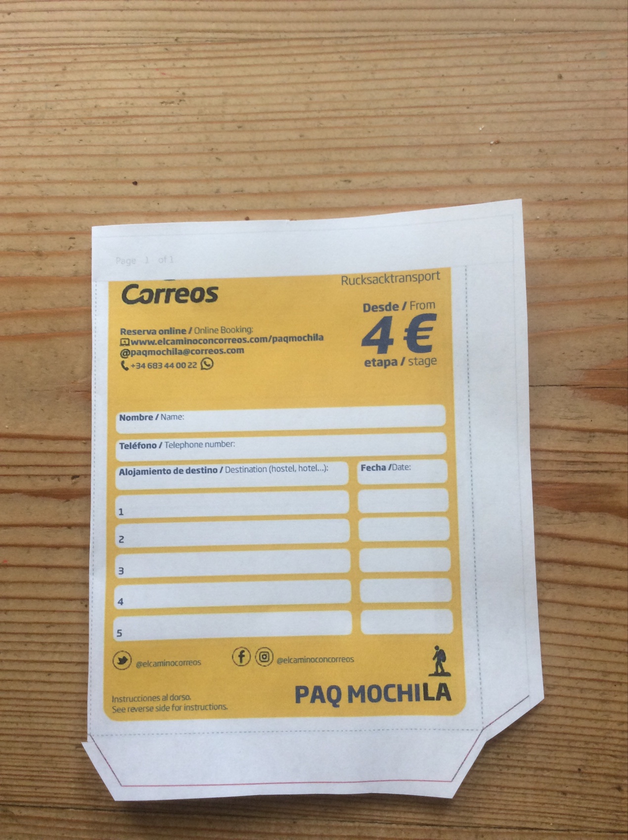 I shall also book the Correos luggage transfers – anticipating € 20.00 .
