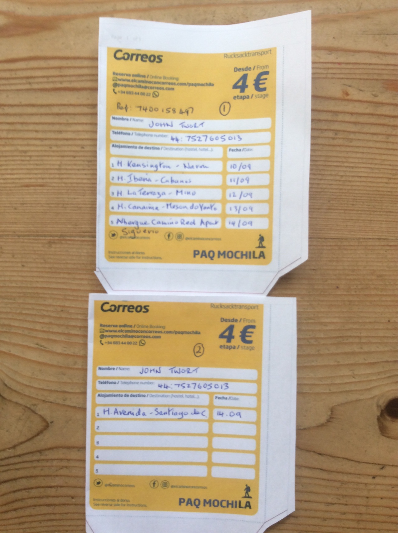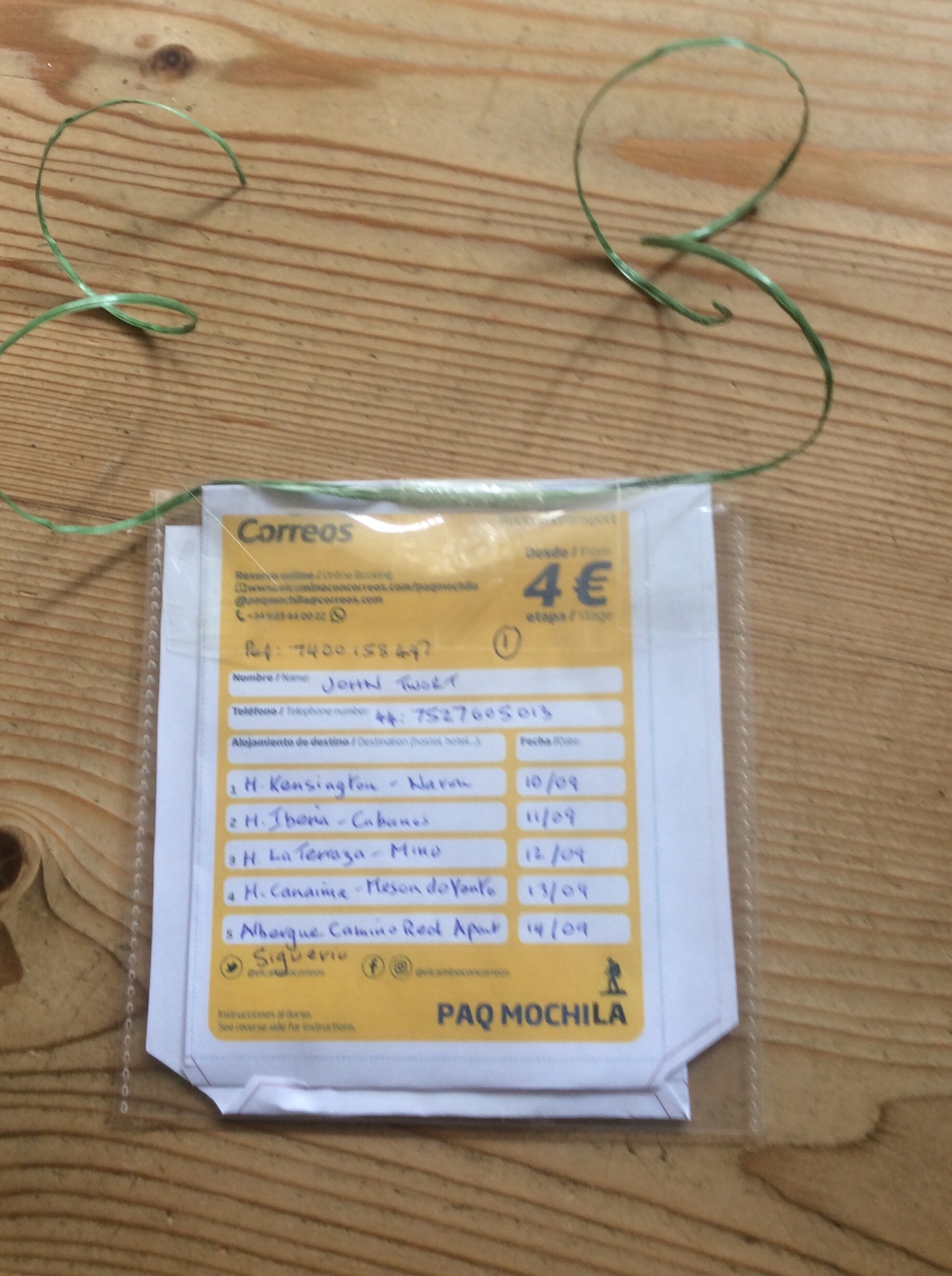 We shall be using the Correos for luggage transfer, as last time.